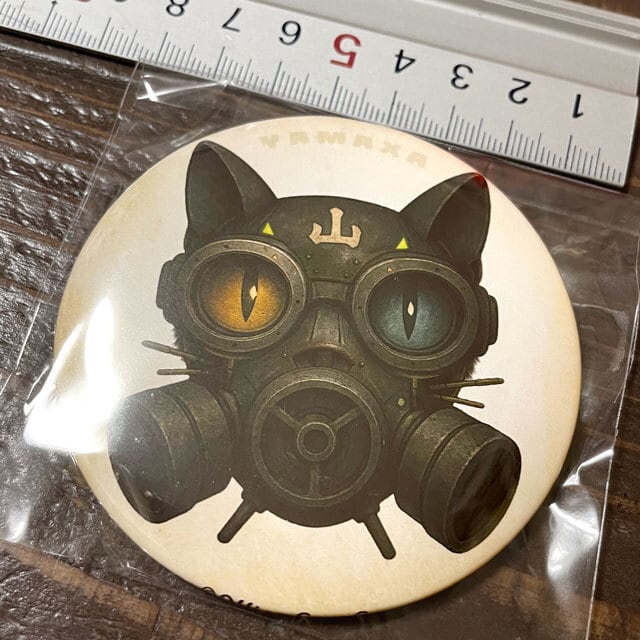 大きな76mmバッジで、猫とガスマスクを合体した独特なデザインが目を引きます。リアルな質感とデストピアSFの雰囲気を漂わせるこのアイテムは、個性的なファッションやデコレーションに不可欠です。